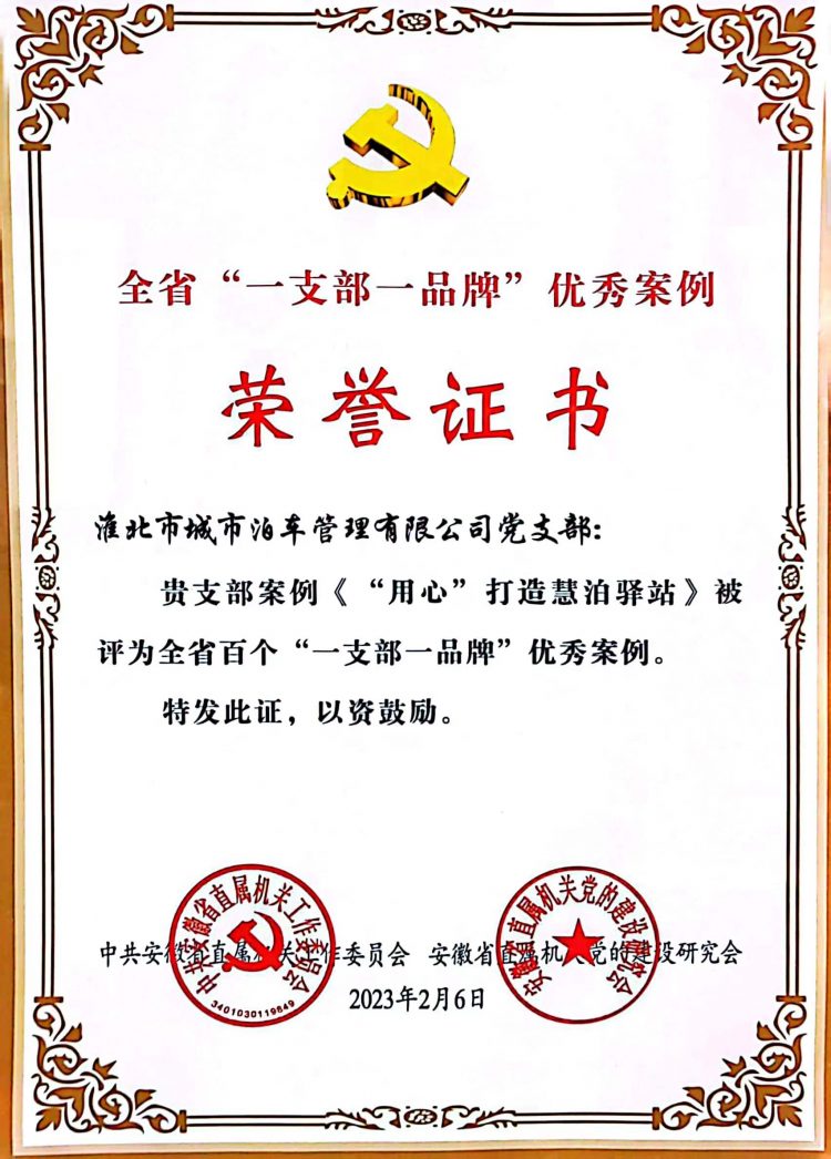 立足新時代,牢記新使命,展示新作為。在今后的工作中,淮北城市泊車管理有限公司黨支部將始終堅持以黨的二十大精神為指引,加強黨支部管理,持續(xù)將品牌創(chuàng)建納入黨員日常學習,以實際行動“擦亮”品牌,助力公司高質(zhì)量跨越式發(fā)展。