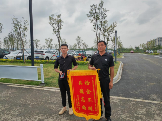 2023年6月17日晚上8點(diǎn),南湖公園公司中湖項(xiàng)目部保安趙新代在金沙戲水沙灘巡查當(dāng)中撿到價(jià)值九千多塊的蘋果手機(jī)一部,第一時(shí)間將情況匯報(bào)至公司物業(yè)群里,并積極主動(dòng)嘗試聯(lián)系失主。通過多方打聽當(dāng)晚終于物歸原主,失主找回手機(jī)后十分激動(dòng),為了表示感謝,失主第二天送來錦旗一面。