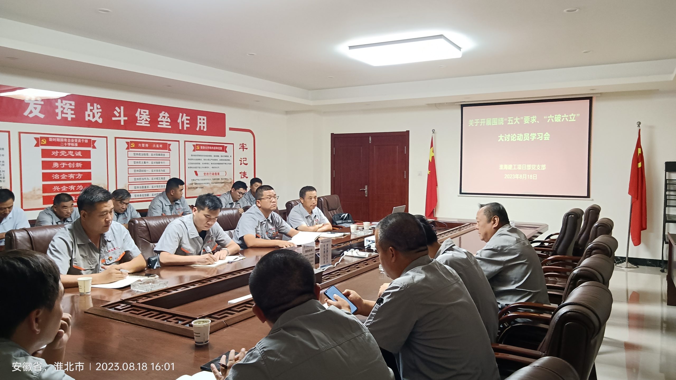 8月18日下午,淮海建工公司項(xiàng)目部黨支部召開圍繞“五大”要求、“六破六立”大討論動(dòng)員學(xué)習(xí)會(huì),項(xiàng)目部黨支部全體黨員同志參加會(huì)議。