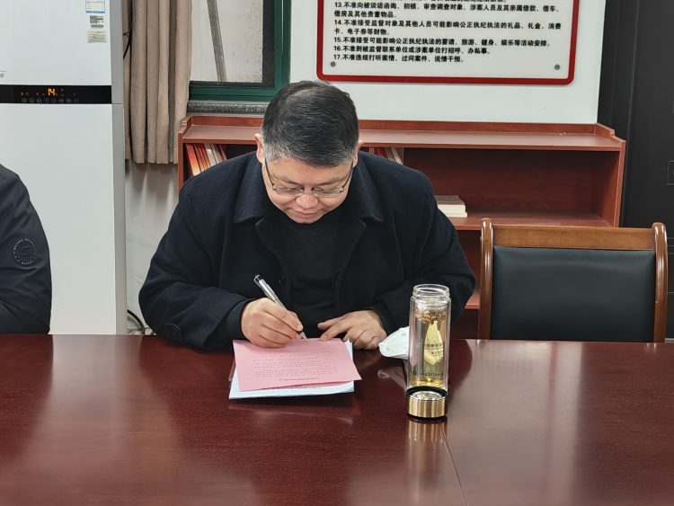 會后,全體紀檢監(jiān)察干部分別簽署了《拒絕酒駕醉駕承諾書》,紛紛表示簽訂承諾書,既是表率,也是約束,作為紀檢監(jiān)察干部,自覺以更高標準、更嚴要求踐行忠誠干凈擔(dān)當!樹牢紀律和規(guī)矩意識,消除僥幸心理,從思想源頭上遏制紀檢監(jiān)察干部發(fā)生酒駕醉駕違紀違法行為,以實際行動為大力營造風(fēng)清氣正的良好政治生態(tài)、遵紀守法的社會環(huán)境提供堅強保障。
