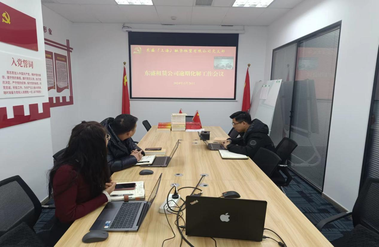 為有效控制公司業(yè)務(wù)風(fēng)險(xiǎn),東盛租賃公司組織業(yè)務(wù)人員對現(xiàn)有存量業(yè)務(wù)進(jìn)行了全面梳理和排查,并成立逾期項(xiàng)目化解小組,積極做好存量項(xiàng)目風(fēng)險(xiǎn)的防范和管控。2024年2月26日,東盛租賃公司總經(jīng)理、逾期項(xiàng)目化解小組組長何曉璐就目前風(fēng)險(xiǎn)項(xiàng)目組織召開了逾期化解工作會議,專門研究部署風(fēng)險(xiǎn)化解事宜。