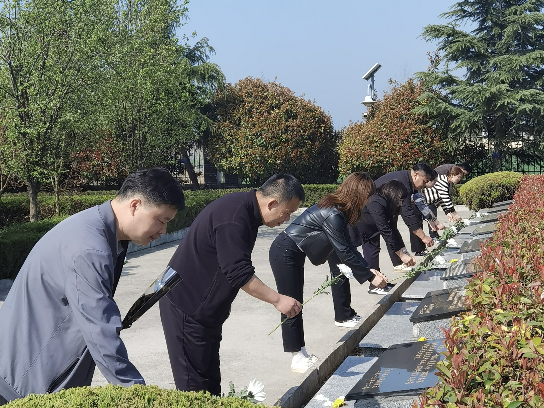 面對烈士紀念碑,大家懷著崇敬的心情,排著整齊的隊伍,繞墓碑一周,依次敬獻鮮花,并深深鞠躬,表達對烈士們英勇無畏的敬仰。整個活動莊嚴肅穆、井然有序,給大家上了一節(jié)生動的思想教育課。