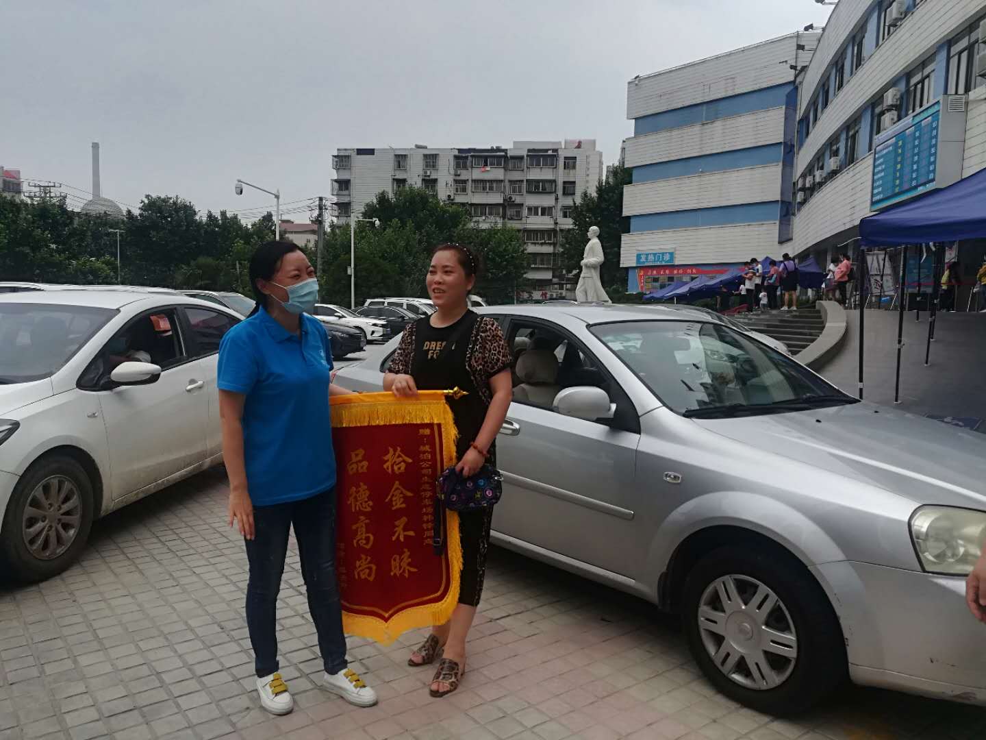 “謝謝你!包里的幾千塊錢還是次要的,主要是老人的就醫(yī)單據(jù)和社保卡補(bǔ)起來得多麻煩啊……”6月20日上午,劉先生和妻子特意從劉橋礦趕來,為市城泊公司人民醫(yī)院門診部停車場收費(fèi)員汪美華送來了繡有“拾金不昧,品德高尚”字樣的大紅錦旗。