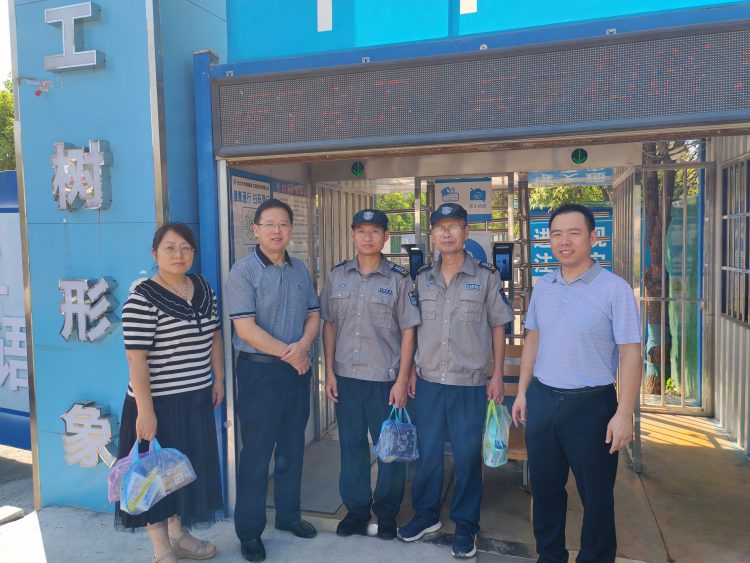 近日,隨著夏季高溫的持續(xù),淮北大地驕陽似火,酷暑難耐。7月31日上午,為表達(dá)對堅守在一線的押運(yùn)和保安隊員的深切關(guān)懷,集團(tuán)公司黨委委員、副總經(jīng)理張立哲同志一行分別前往保安公司押運(yùn)徽商銀行駐點(diǎn)、人防電廠2號門駐點(diǎn),為在高溫下辛勤工作的隊員們送去了香皂、洗發(fā)水、花露水等慰問品,并送上一份清涼與關(guān)愛。