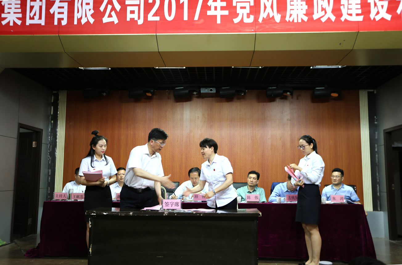 會上,集團(tuán)公司黨委書記與與黨委委員、總經(jīng)理助理,黨委委員、總經(jīng)理助理與分管部室和子公司負(fù)責(zé)人分別簽訂2017年黨風(fēng)廉政建設(shè)目標(biāo)責(zé)任書。