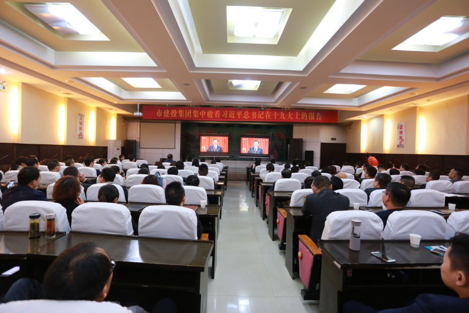 10月18日上午9:00,市建投集團組織全體黨員干部在一樓大禮堂集中收聽收看黨的十九大開幕會直播盛況。會議在嘹亮的國歌聲中拉開序幕。