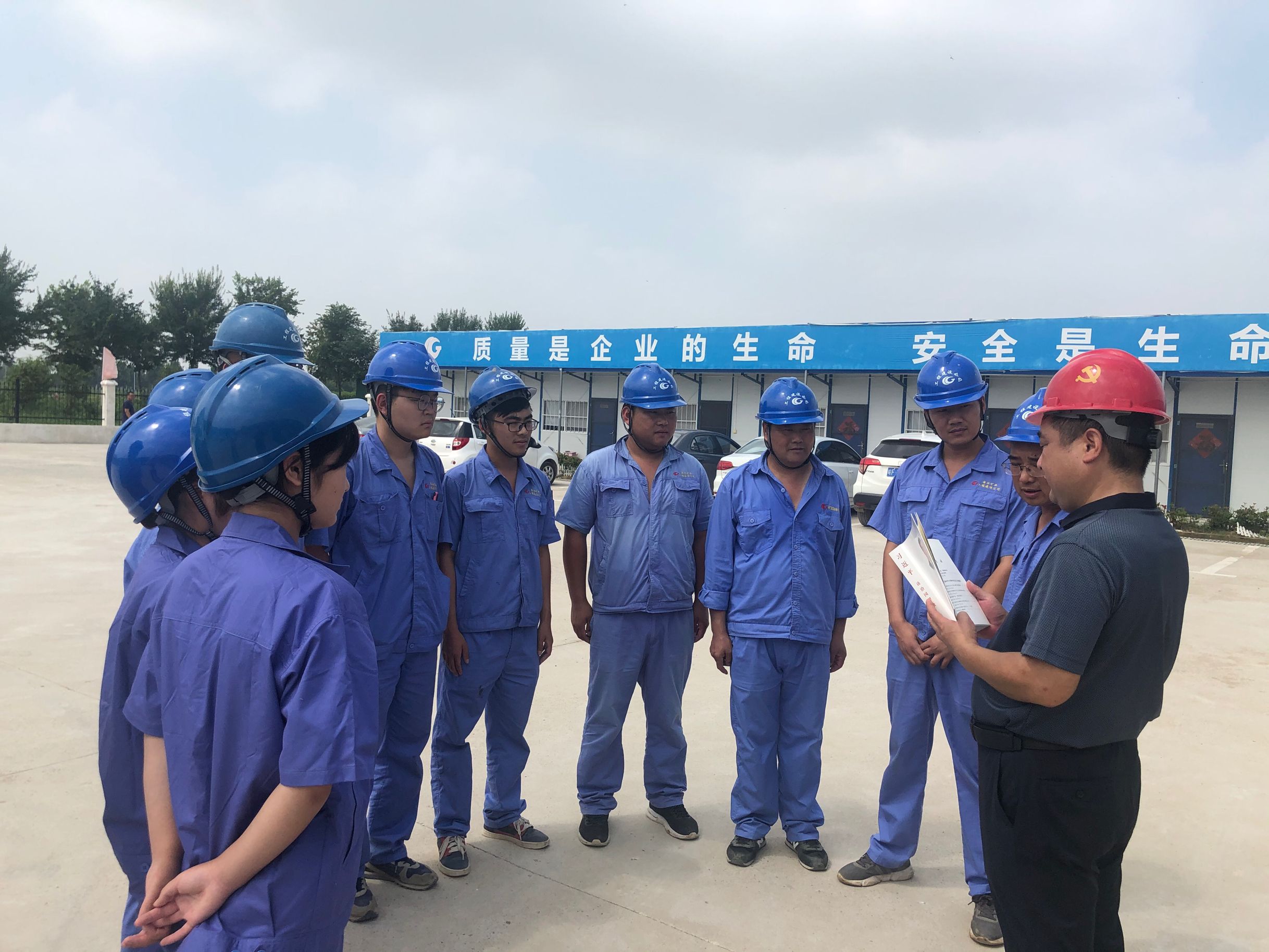 8月11日,房地產(chǎn)黨支部副書(shū)記童曉強(qiáng)頂著烈日、冒著高溫,在綠金新城項(xiàng)目部帶領(lǐng)黨員、干部、員工認(rèn)真學(xué)習(xí)《習(xí)近平談治國(guó)理政》第三卷。
