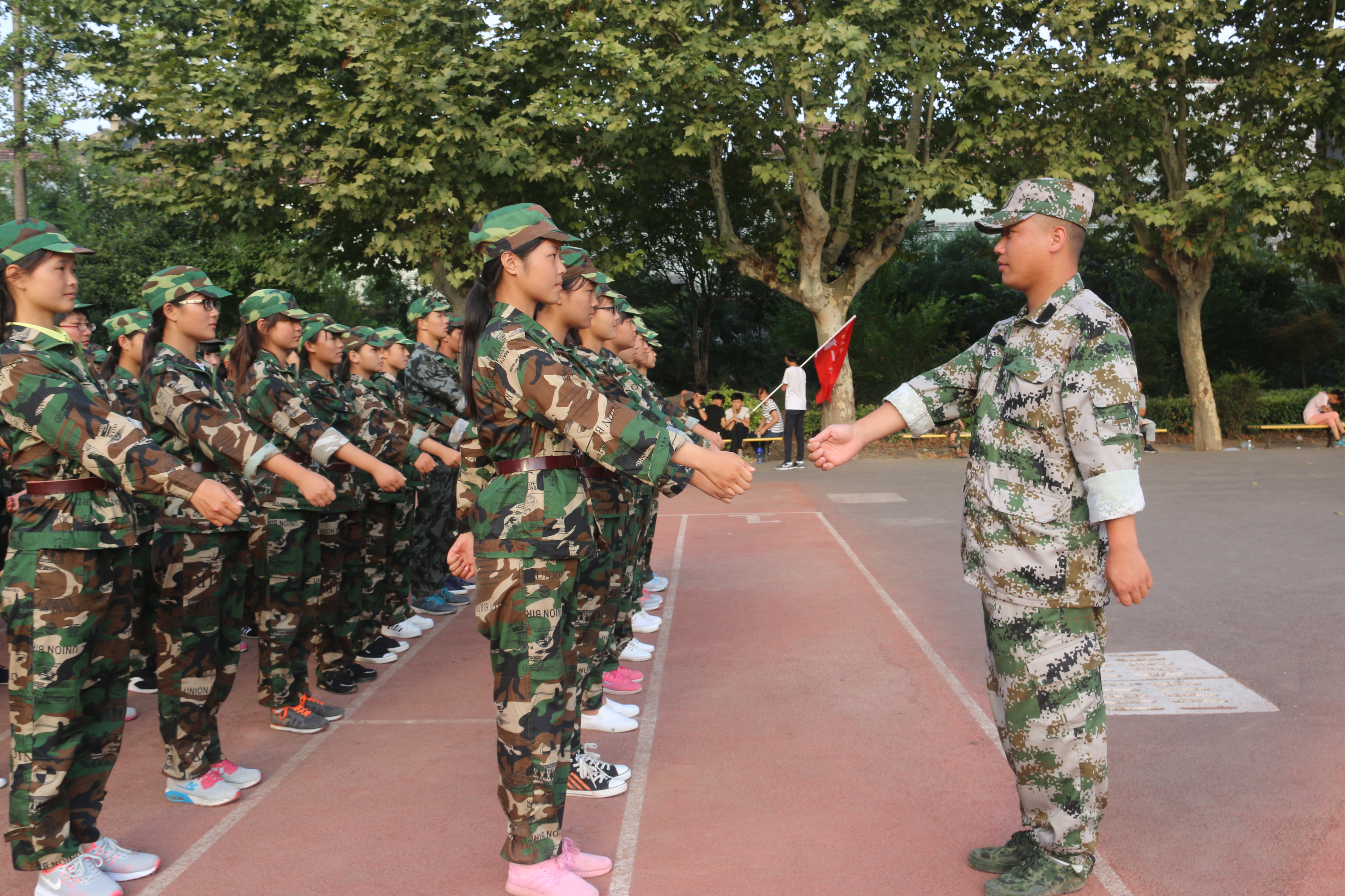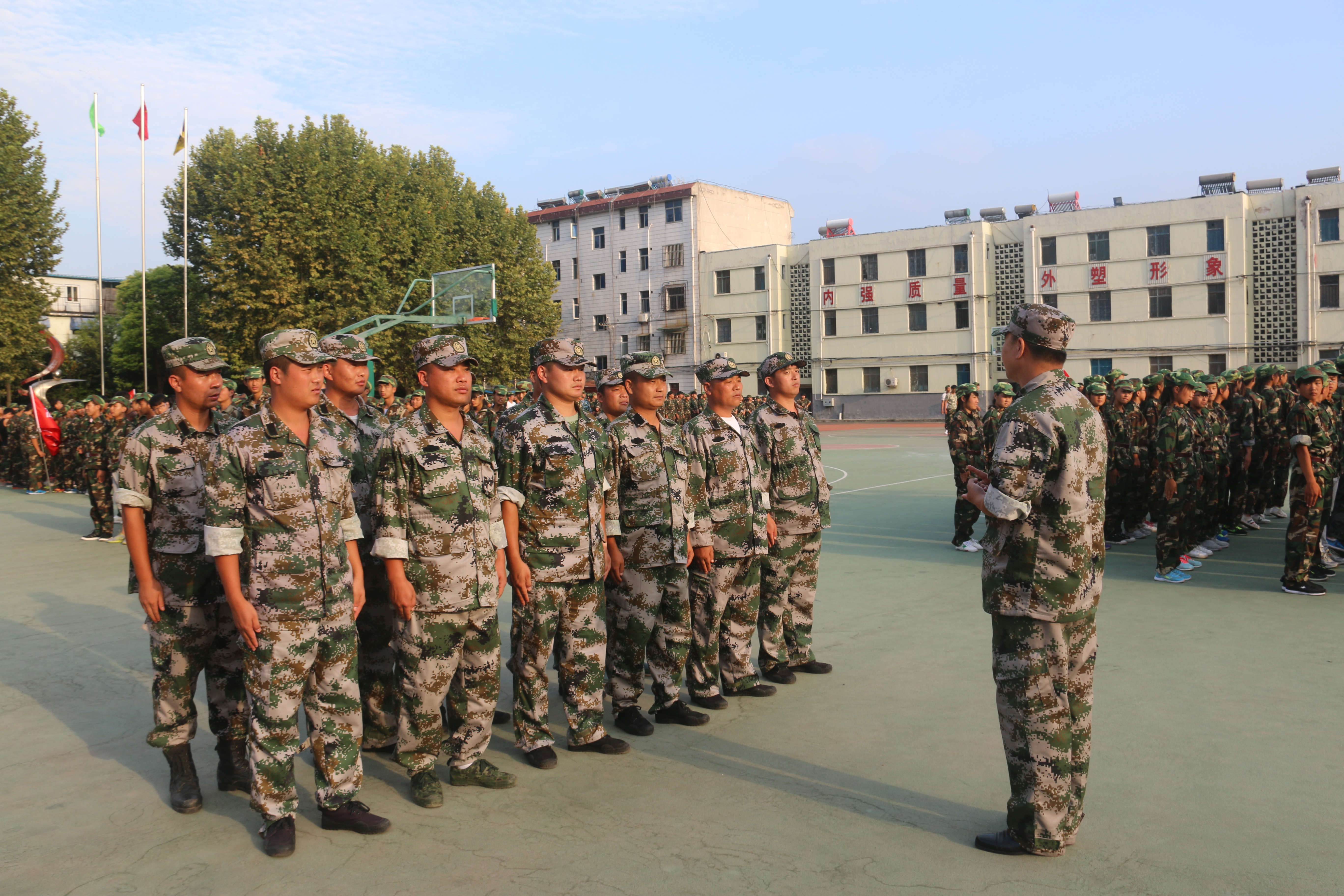 訓(xùn)練場(chǎng)上,教官們能克服各種多變的天氣的困擾,以飽滿的熱情投入到每天的訓(xùn)練中去。抱著不怕苦、不怕累的精神,認(rèn)真地把每個(gè)動(dòng)作教給學(xué)子們:從一步一動(dòng)、一步二動(dòng)開(kāi)始,到整齊劃一;從齊步、正步、到跑步,一步步帶領(lǐng)他們走進(jìn)合格“士兵”的行列。各項(xiàng)工作有條不紊,參訓(xùn)同學(xué)熱情高漲,董事長(zhǎng)為此非常高興,對(duì)教官們一絲不茍的教導(dǎo)和同學(xué)們嚴(yán)謹(jǐn)認(rèn)真的訓(xùn)練表示肯定,對(duì)大家的辛苦工作表示慰問(wèn)。他說(shuō),經(jīng)過(guò)教官們認(rèn)真解說(shuō)示范,同學(xué)們迅速進(jìn)入了訓(xùn)練狀態(tài),表現(xiàn)出了極高的熱情,并在很短的時(shí)間內(nèi)取得了較大進(jìn)步,動(dòng)作標(biāo)準(zhǔn)有了一定的提高,這是難能可貴的,充分體現(xiàn)了教官們的認(rèn)真施訓(xùn)和同學(xué)們的刻苦努力。