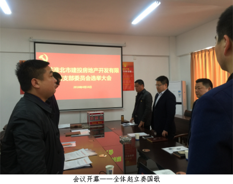 2018年4月16日,淮北市建投房地產(chǎn)開(kāi)發(fā)有限公司黨支部召開(kāi)黨員大會(huì),選舉產(chǎn)生了第一屆支部委員會(huì)。