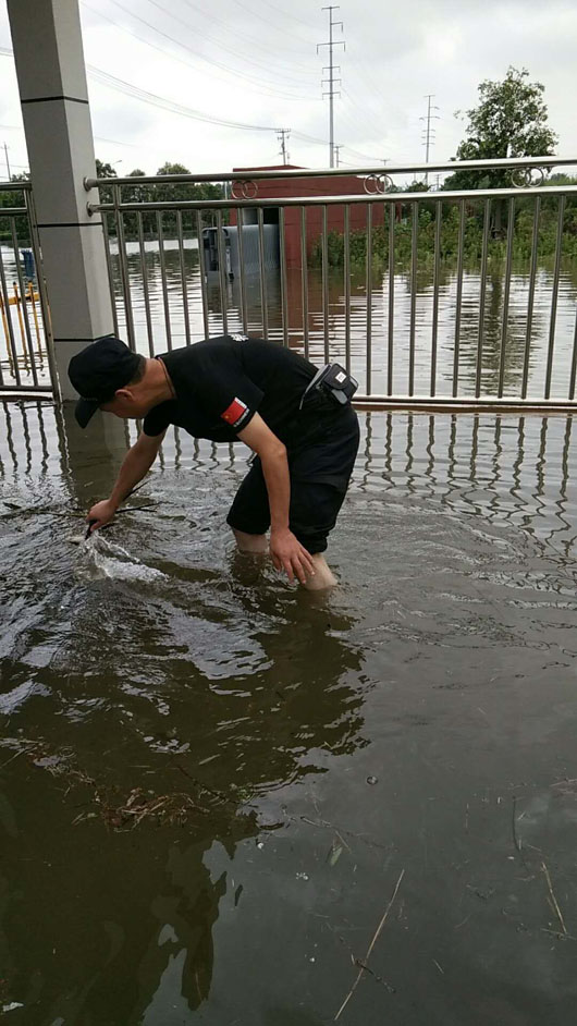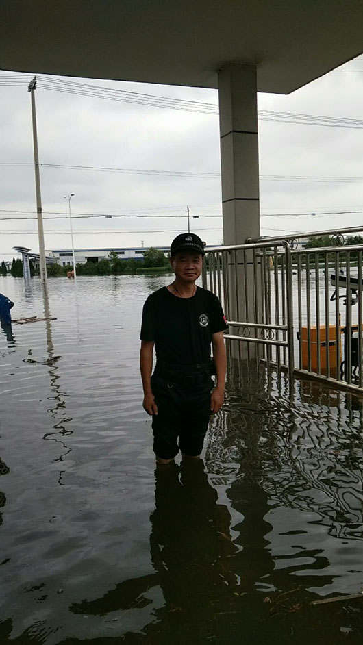 在洪澇期間,斷水?dāng)嚯娗闆r下,他們始終堅守工作崗位六天六夜,認真履行保衛(wèi)職責(zé),開展生活自救,危急時刻,不懼危險,無畏艱難,積極幫助服務(wù)單位轉(zhuǎn)移車間各種精密儀器設(shè)備,為客戶單位挽回重大經(jīng)濟損失,積極引導(dǎo)員工疏散,確保了廠區(qū)員工的人身安全。