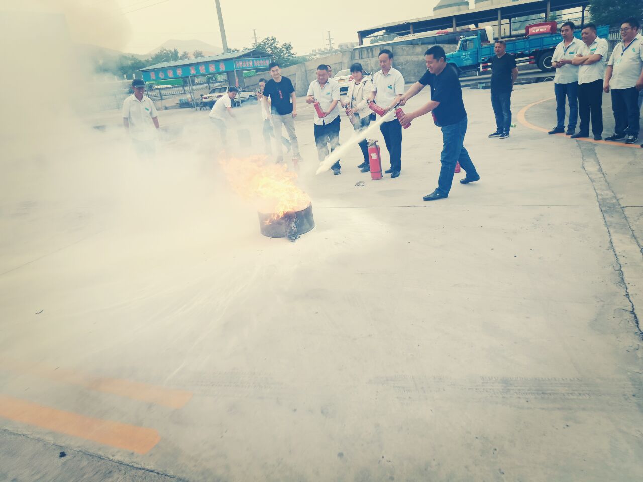 為了普及消防安全常識,提升員工應(yīng)急防護(hù)自救,強(qiáng)化消防意識,做好駕校訓(xùn)練場所的消防安全工作,金安聯(lián)合金鷹、金盾于2019年5月15日下午16:00—16:30舉行了“消防演練活動”。整個活動包括兩大項:一、由專業(yè)消防人員介紹認(rèn)識滅火器和正確使用滅火器;二、演練火災(zāi)滅火過程,共歷時半小時,駕校全體員工及部分學(xué)員共計人參加了演練。通過此次消防演練,為大家提供了一次實戰(zhàn)模擬訓(xùn)練,使大家熟悉了必須的應(yīng)急操作,進(jìn)一步增強(qiáng)了員工消防意識能力,同時還掌握了干粉滅火器操作使用步驟及方法。