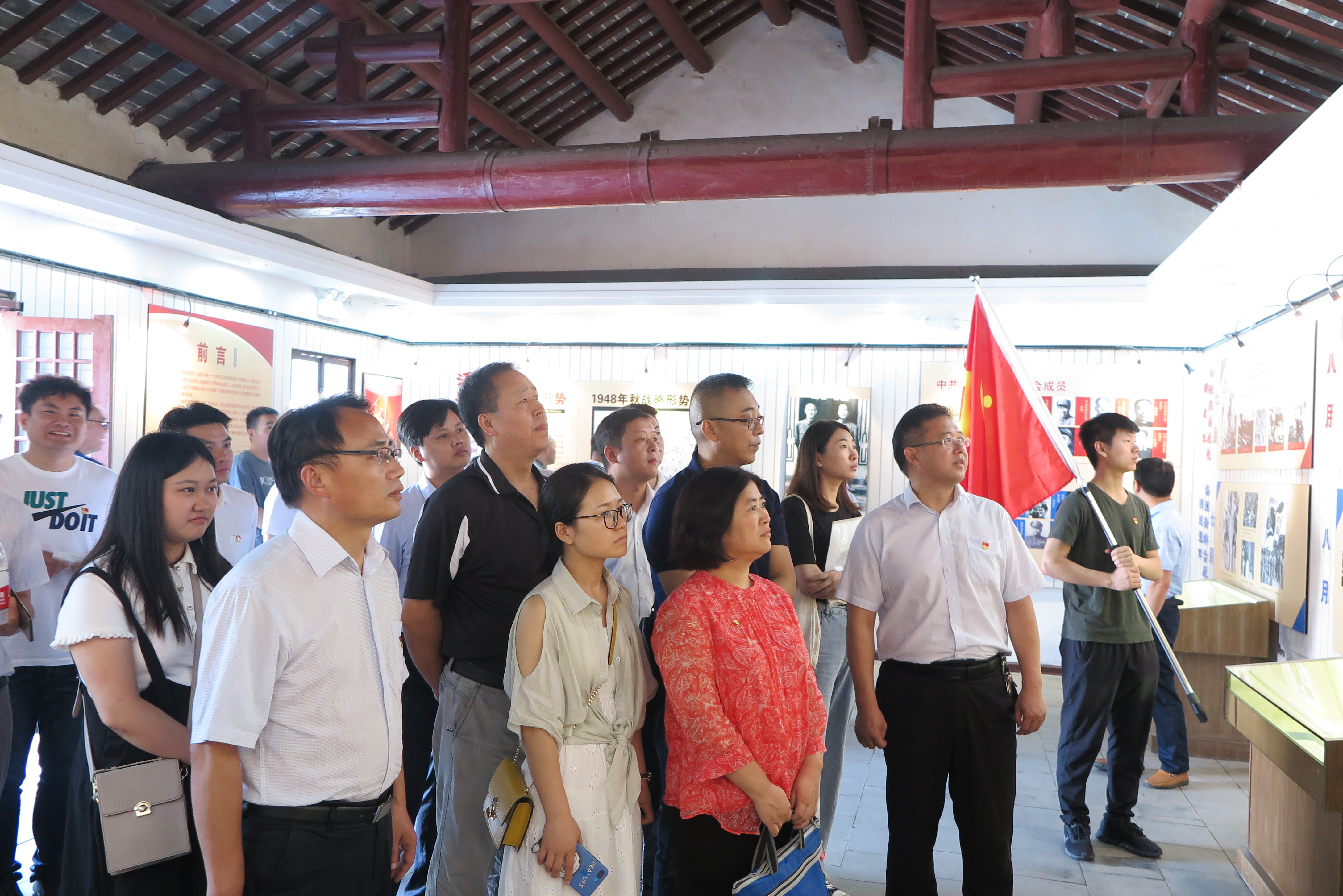 四個黨支部共計28名黨員同志赴臨渙文昌宮,參觀中共淮海戰(zhàn)役總前委舊址,走近在文昌宮回顧淮海戰(zhàn)役的革命歷程,緬懷老一輩無產(chǎn)階級革命家的豐功偉績,教育和引導(dǎo)黨員們進(jìn)一步增強(qiáng)“四個意識”,堅定“四個自信”,做到“兩個維護(hù)”。隨后,全體黨員同志到小李莊淮海戰(zhàn)役總前委指揮部舊址和小李家紅色博物館進(jìn)行參觀學(xué)習(xí)。在紅色主題文化廣場進(jìn)行宣誓,再一次重溫入黨誓詞,回顧入黨初心,牢記黨員使命。