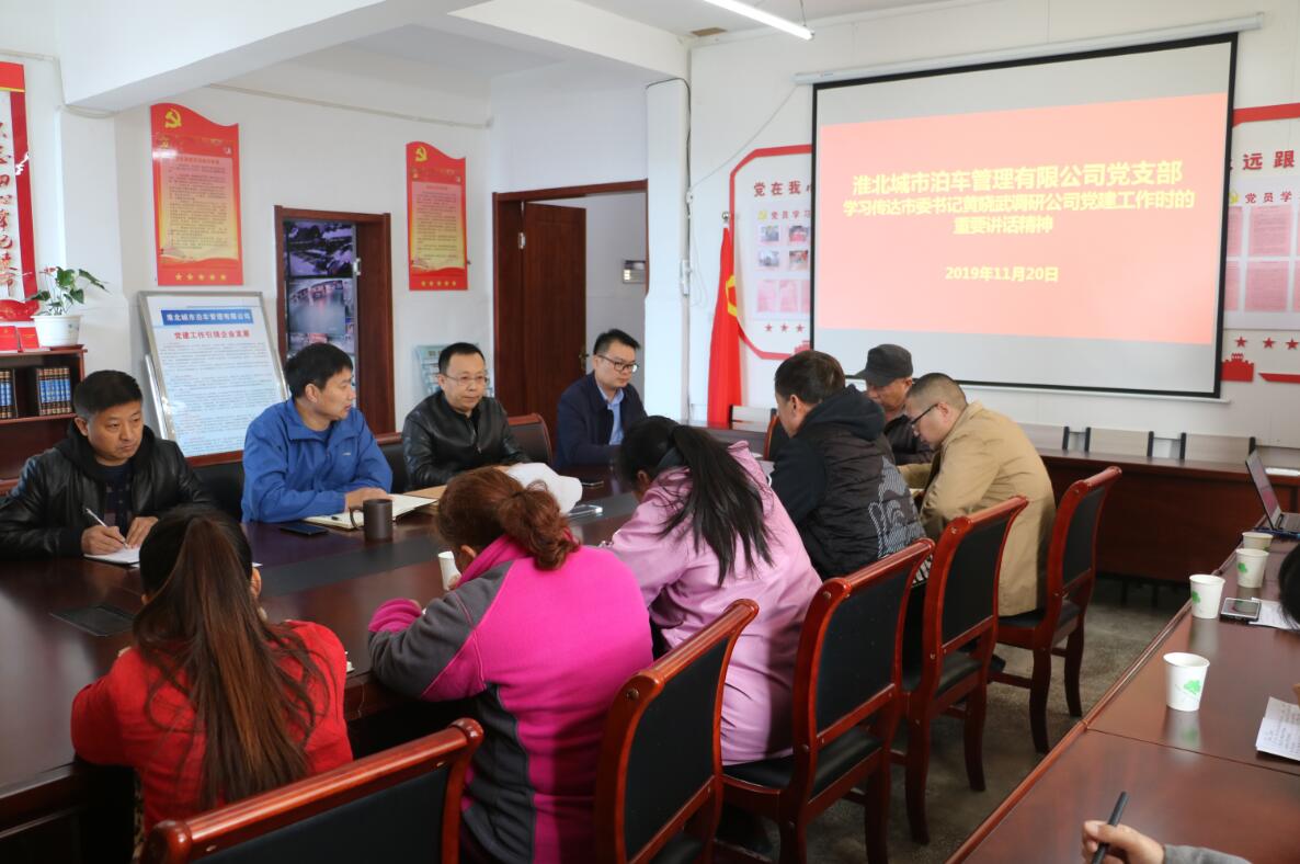 會議指出,在全市掀起學(xué)習(xí)貫徹黨的十九屆四中全會精神熱潮之際,市委書記黃曉武來到城泊公司就基層黨建工作進行專題調(diào)研,充分肯定了城泊公司的發(fā)展方向、工作思路和黨建工作,鼓勵大家充分發(fā)揮黨員先鋒模范帶頭作用,打造便民服務(wù)優(yōu)秀戰(zhàn)斗堡壘。