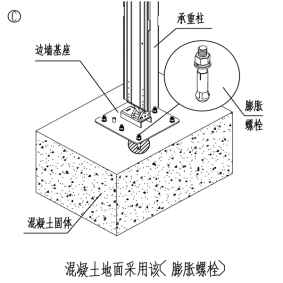 安裝地點為水泥或瀝青地面使用膨脹螺絲;(水泥厚度20-25厘米) |