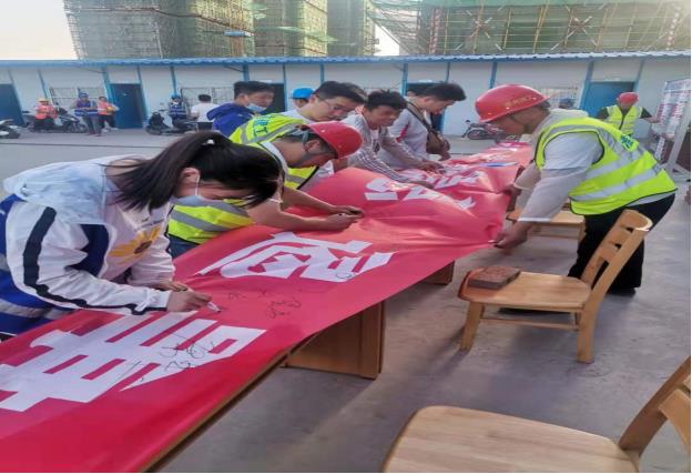 各項(xiàng)目部圍繞“落實(shí)安全責(zé)任 推動(dòng)安全發(fā)展”主題舉行了“安全生產(chǎn)月啟動(dòng)儀式”,組織全體員工深入學(xué)習(xí)習(xí)近平總書(shū)記關(guān)于安全生產(chǎn)重要論述,收看《生命重于泰山——學(xué)習(xí)習(xí)近平總書(shū)記關(guān)于安全生產(chǎn)重要論述》電視專(zhuān)題片,召開(kāi)誓師大會(huì),舉行宣誓和簽字儀式,員工紛紛表示,要牢記安全誓詞,銘刻安全理念,自覺(jué)履行崗位安全生產(chǎn)職責(zé),確保全年安全生產(chǎn)形勢(shì)穩(wěn)定。